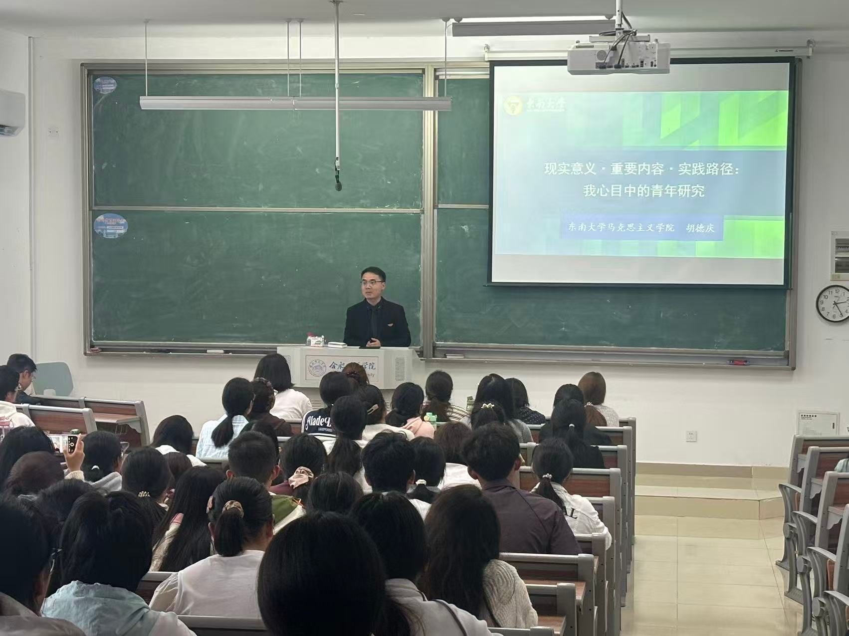 报告的题目是“现实意义·重要内容·实践路径:我心目中的青年研究”。胡德庆深情地回顾了在母校读书时的难忘岁月,感恩母校老师的谆谆教导和精心引导,使得他立志通过自己的专业报效祖国;并希望学弟学妹们要认真听取老师的教育引导,扎扎实实学好专业课程,不辜负每一天在校学习的日子。