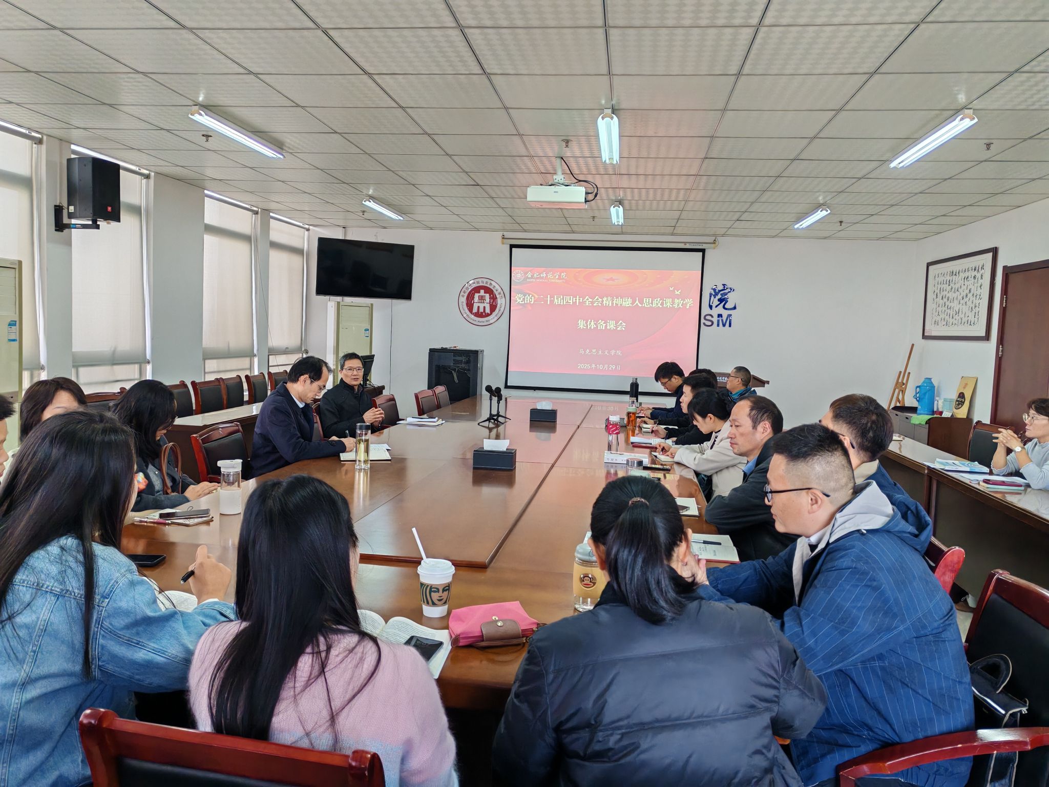 为深入学习贯彻党的二十届四中全会精神,推动党的创新理论最新成果及时、准确、全面融入思政课教学,10月29日上午,威廉希尔官网数据在行知楼1610组织开展了党的二十届四中全会精神融入思政课教学集体备课会,会议由院长何光辉主持,学院全体思政课教师参加。