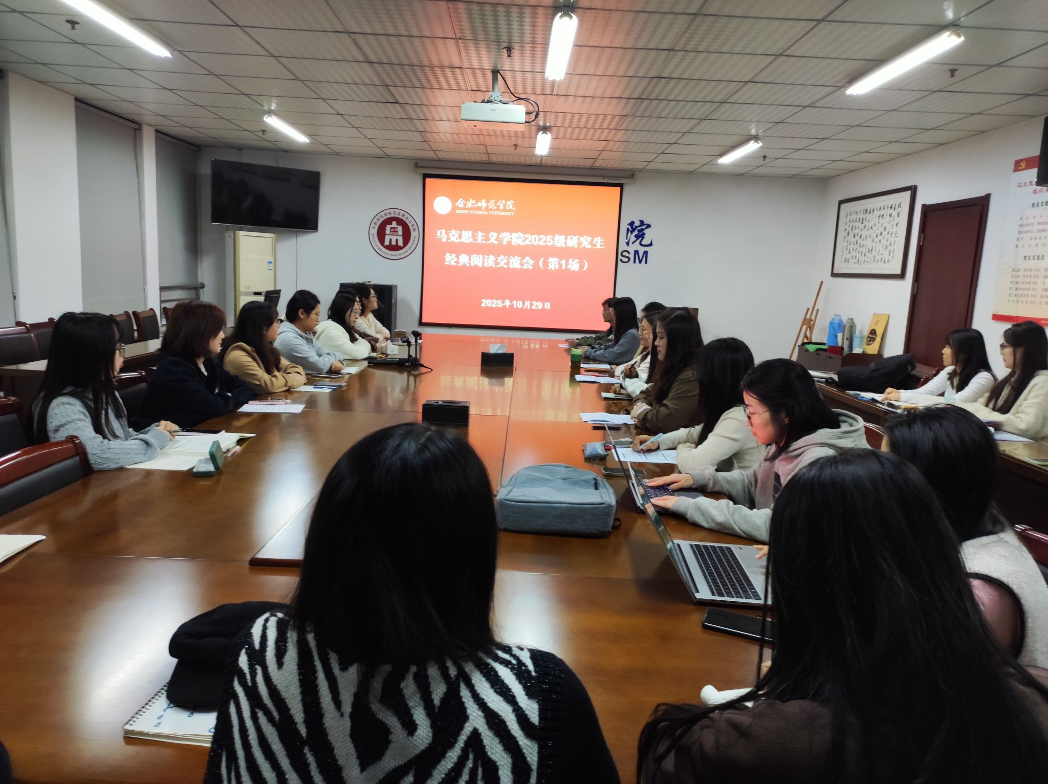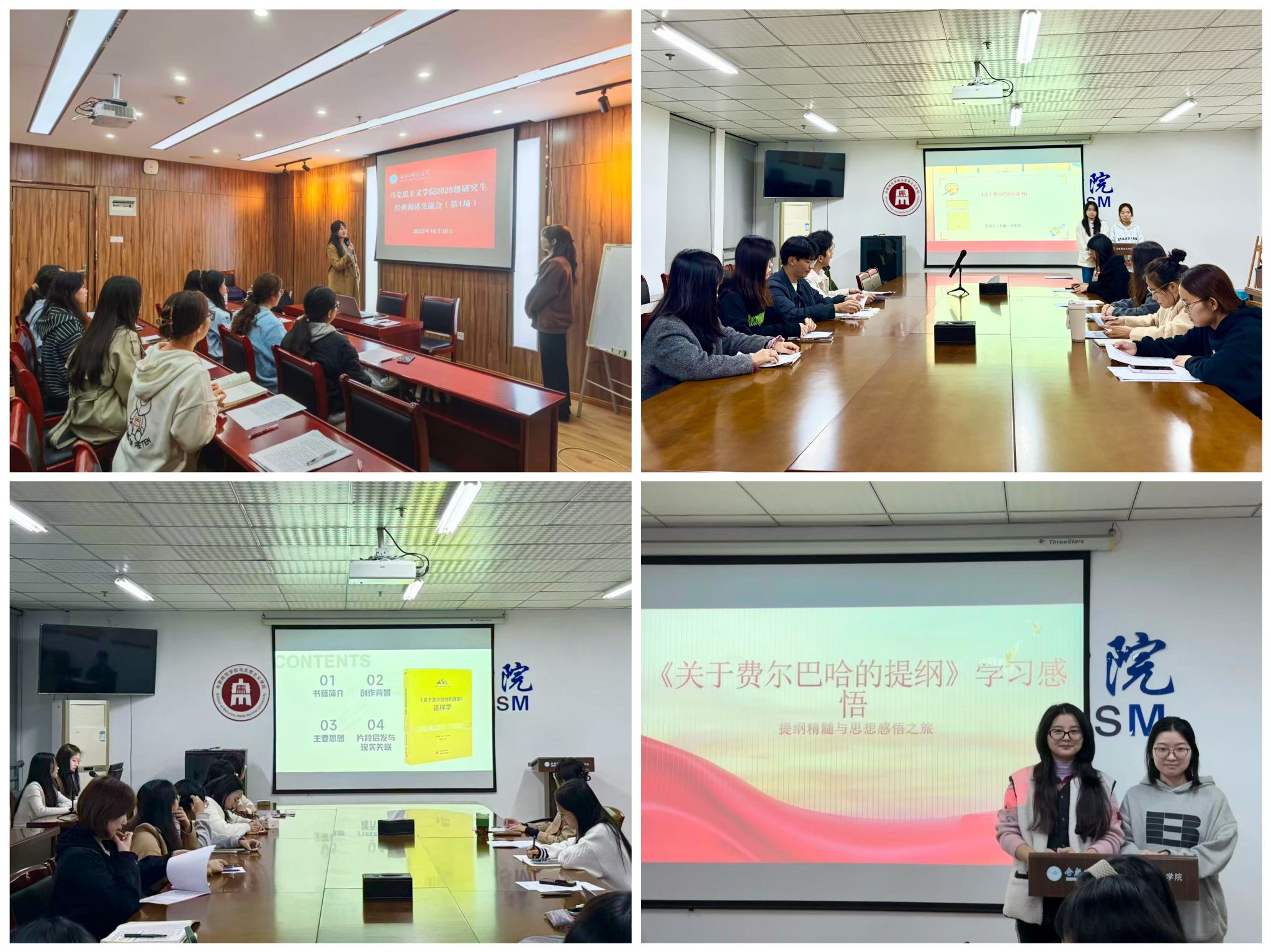 为引导研究生深耕马克思主义经典著作,夯实马克思主义理论学科根基,10月29日和30日晚上,2025级研究生在行知楼1610、1712分四组举办《关于费尔巴哈的提纲》研读交流活动。交流会由研究生教学部主任朱玉利主持,2025级全体研究生参与交流研讨。