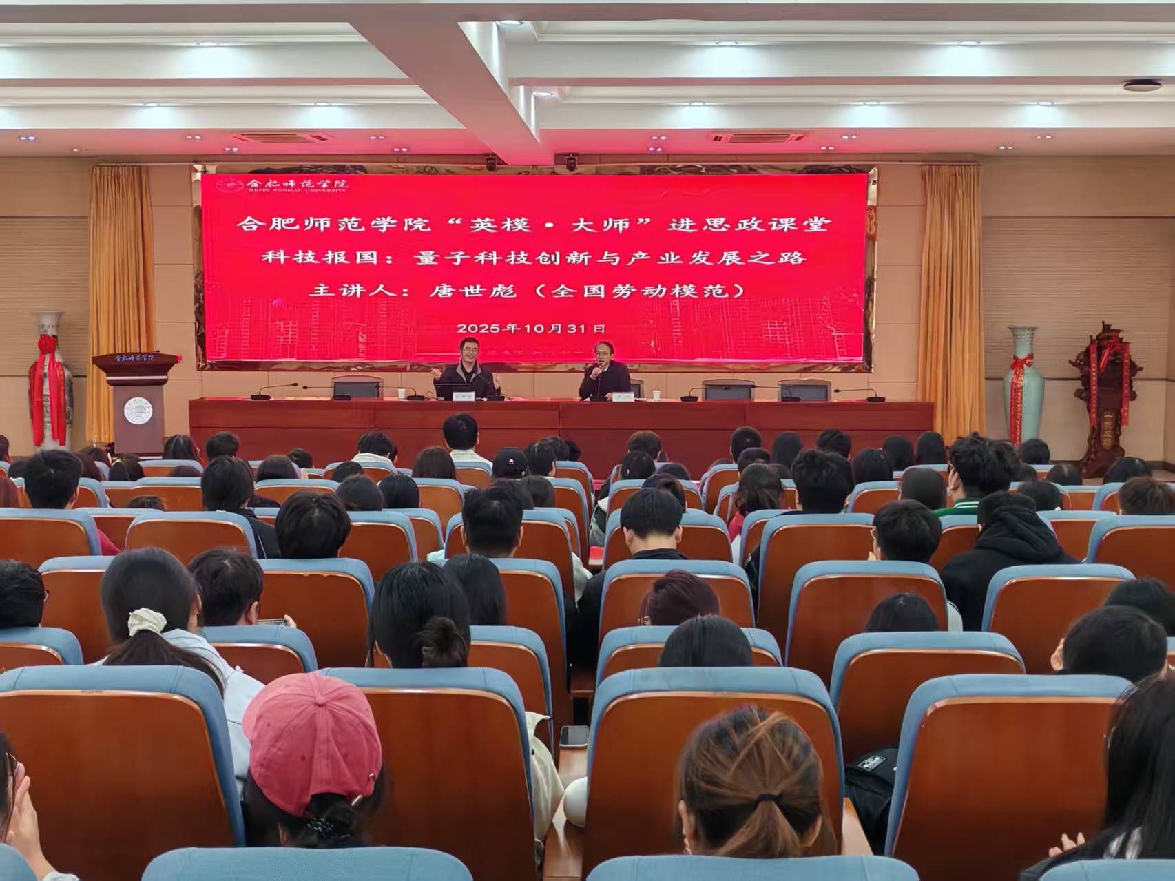 10月31日下午,学院在锦绣校区学术报告厅开展“英模·大师进思政课堂”活动。全国劳动模范、科大国盾量子技术股份有限公司副总裁唐世彪应邀为师生们带来《科技报国:量子科技创新与产业发展之路》报告,300名师生聆听了报告会,报告会由威廉希尔官网数据副院长方政主持。