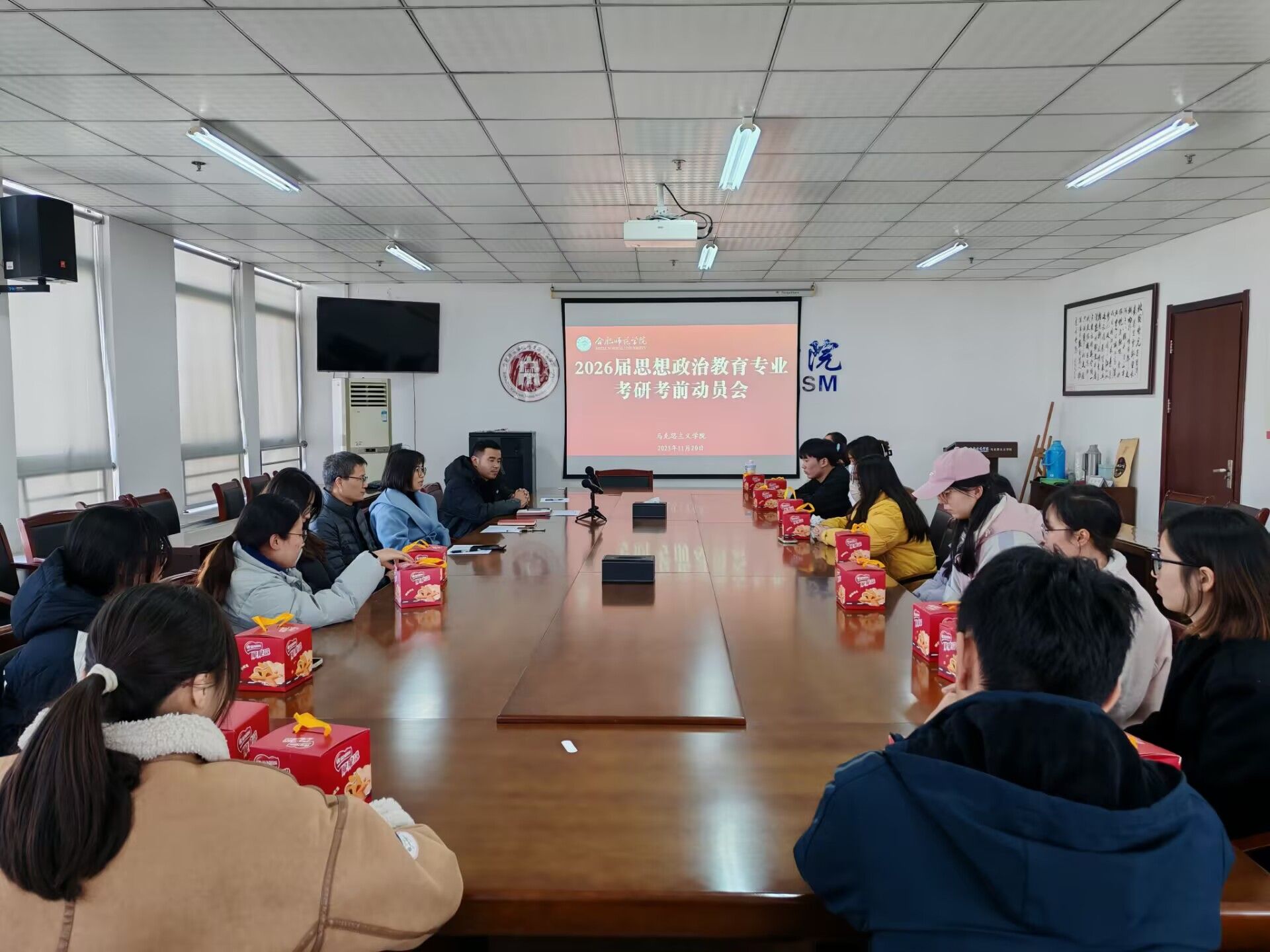 为帮助2026届思想政治教育专业考研学生缓解备考压力、坚定冲刺信念,11月20日下午,威廉希尔官网数据召开思想政治教育专业考研考前动员会。学院党政领导班子及教师代表参加动员会,与20余名考研学生亲切交流。