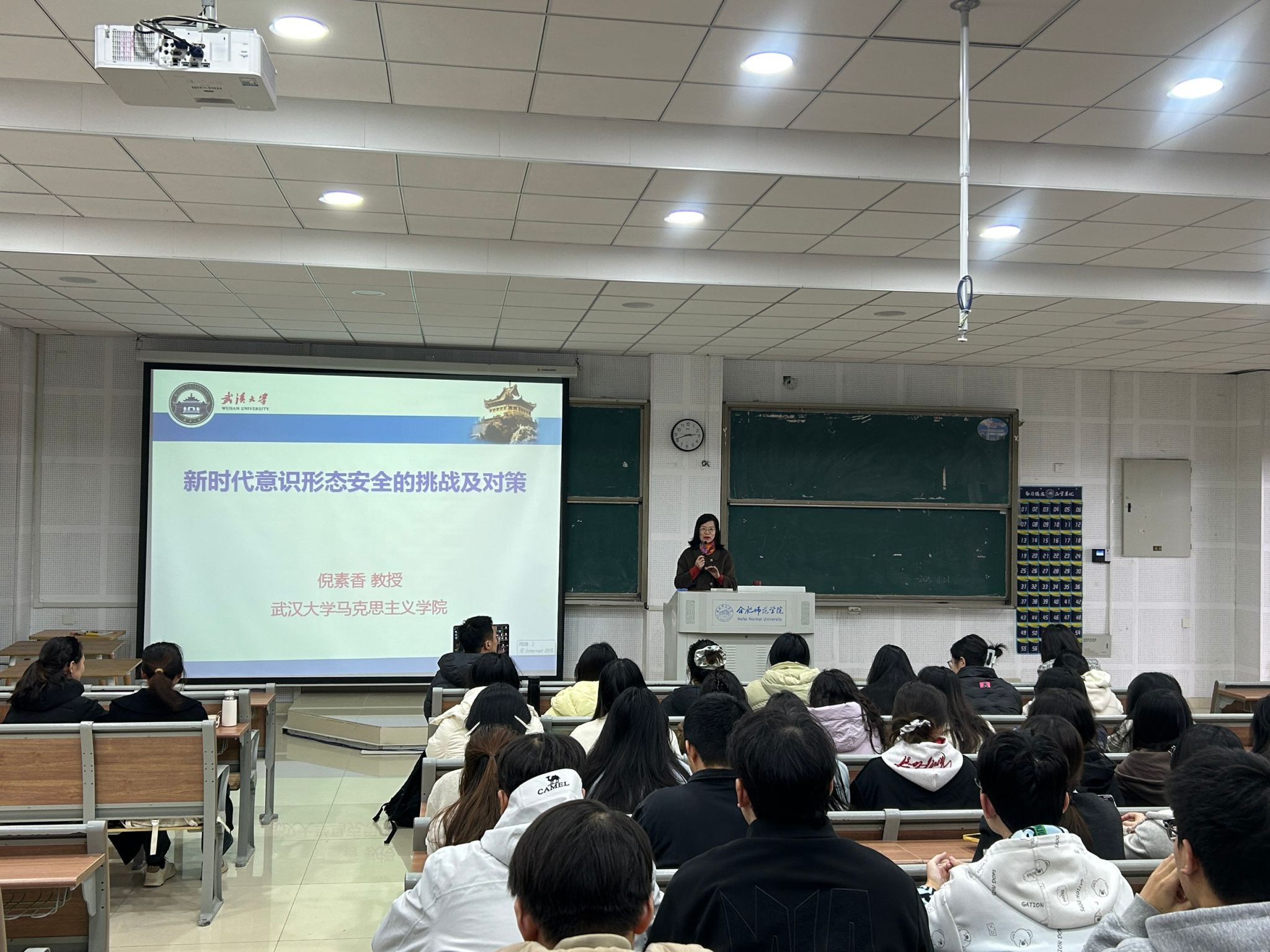 为筑牢师生意识形态思想防线,提升对新时代意识形态安全的认知与把握,11月21日下午,武汉大学威廉希尔官网数据教授、博士生导师倪素香在滨湖校区博学楼A108教室作“新时代意识形态安全的挑战及对策”的专题学术讲座。讲座由威廉希尔官网数据党委书记刘艳主持,全院师生代表200余人参加。