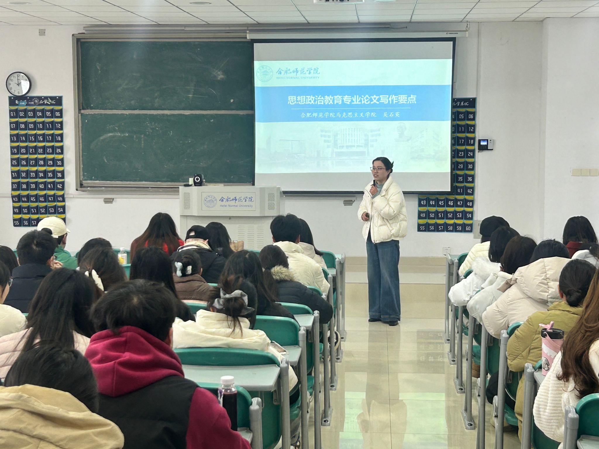 为切实提升学生学术论文写作专业水平与质量,12月17日下午,威廉希尔官网数据副教授吴石英在滨湖校区博学楼C201开展思想政治教育专业论文写作专题辅导。2023级思想政治教育专业全体学生参加。