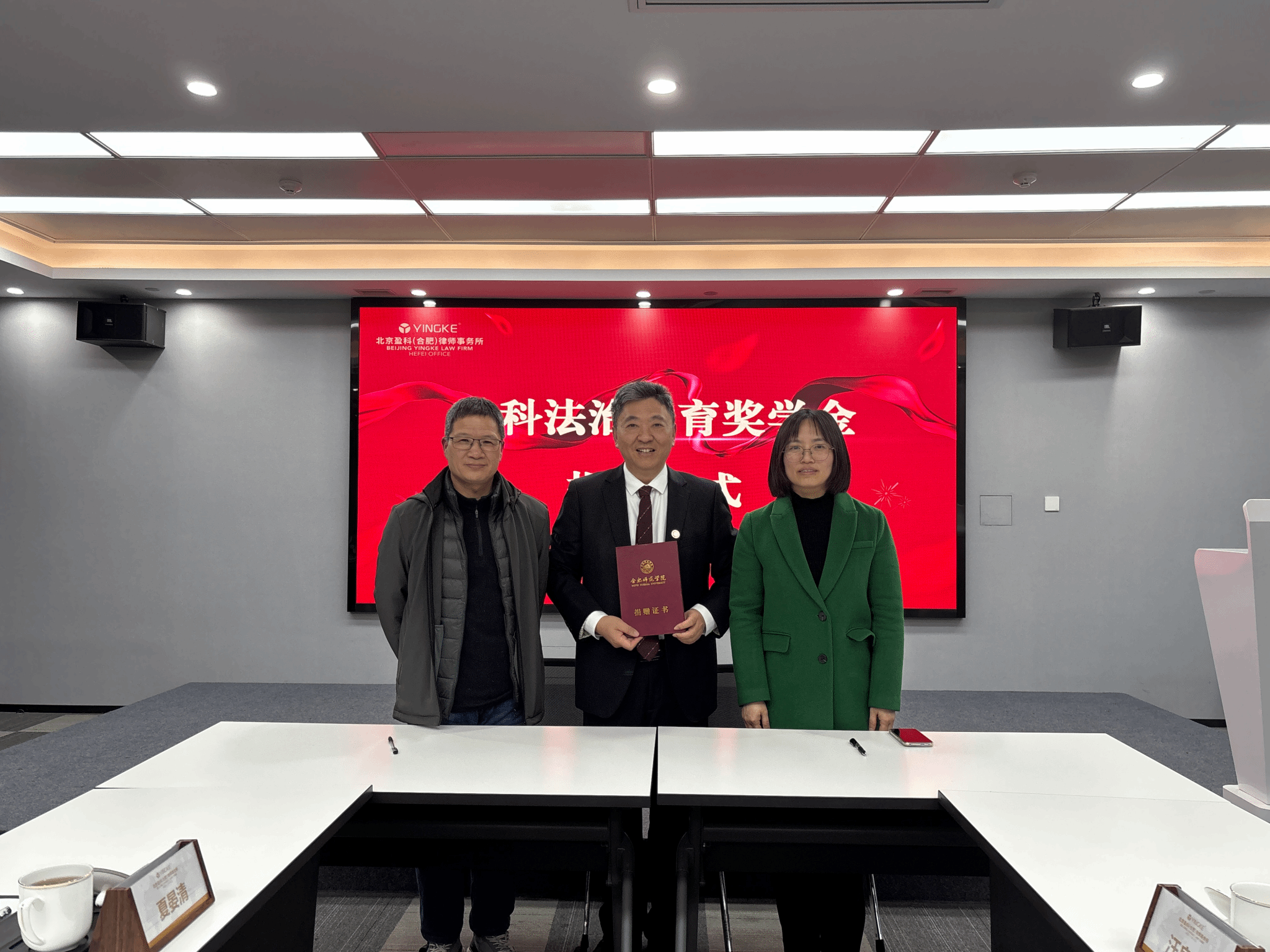 刘艳代表学院与胡瑾签订捐赠协议并颁发捐赠证书。捐赠方代表付磊表示,盈科合肥律师事务所一直以来高度重视社会责任与公益事业,积极支持法学教育和人才培养,与胡瑾校友共同推动设立“盈科法治教育奖学金”。他期待未来双方能在学术交流、实践教学、实习实训等方面开展更深层次的合作,共同为法治中国建设培养更多优秀人才。